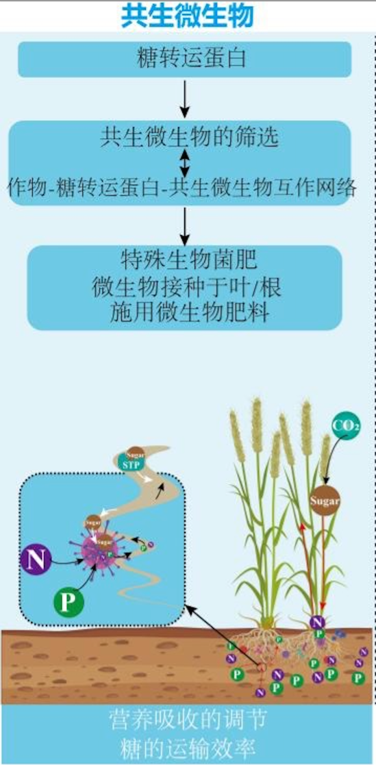 首先,增強(qiáng)糖轉(zhuǎn)運(yùn)蛋白與共生微生物的相互作用是提高作物產(chǎn)量的重要策略之一。互惠微生物宛如一群微小卻神通廣大的“精靈”,與植物締結(jié)了緊密且精妙的共生契約?;セ菸⑸锟梢詾橹参锾峁└嗟臓I養(yǎng)物質(zhì)如氮、磷、鉀;植物則為微生物提供更多的糖分,二者互利共贏。糖轉(zhuǎn)運(yùn)蛋白就像互惠微生物的“補(bǔ)給車”,負(fù)責(zé)它的能量補(bǔ)給。通過這一策略,可以幫助植物更好地吸收土壤中的養(yǎng)分,比如磷和氮。這就像給植物吃了“營養(yǎng)補(bǔ)品”,讓它們長得更壯實(shí)。