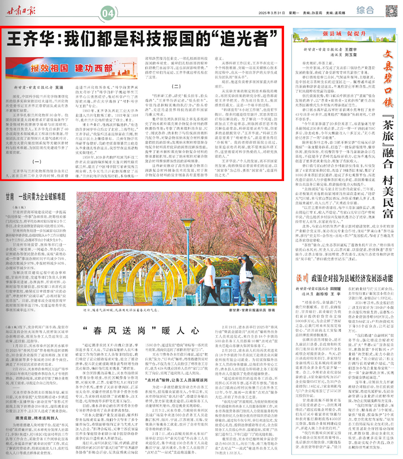 【甘肅日報】報效祖國 建功西部——王齊華:我們都是科技報國的“追光者”