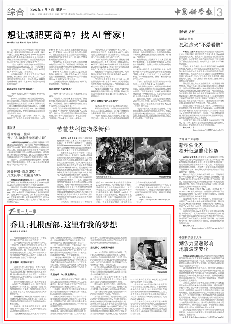 【中國科學(xué)報(bào)】喬旦:扎根西部,這里有我的夢想