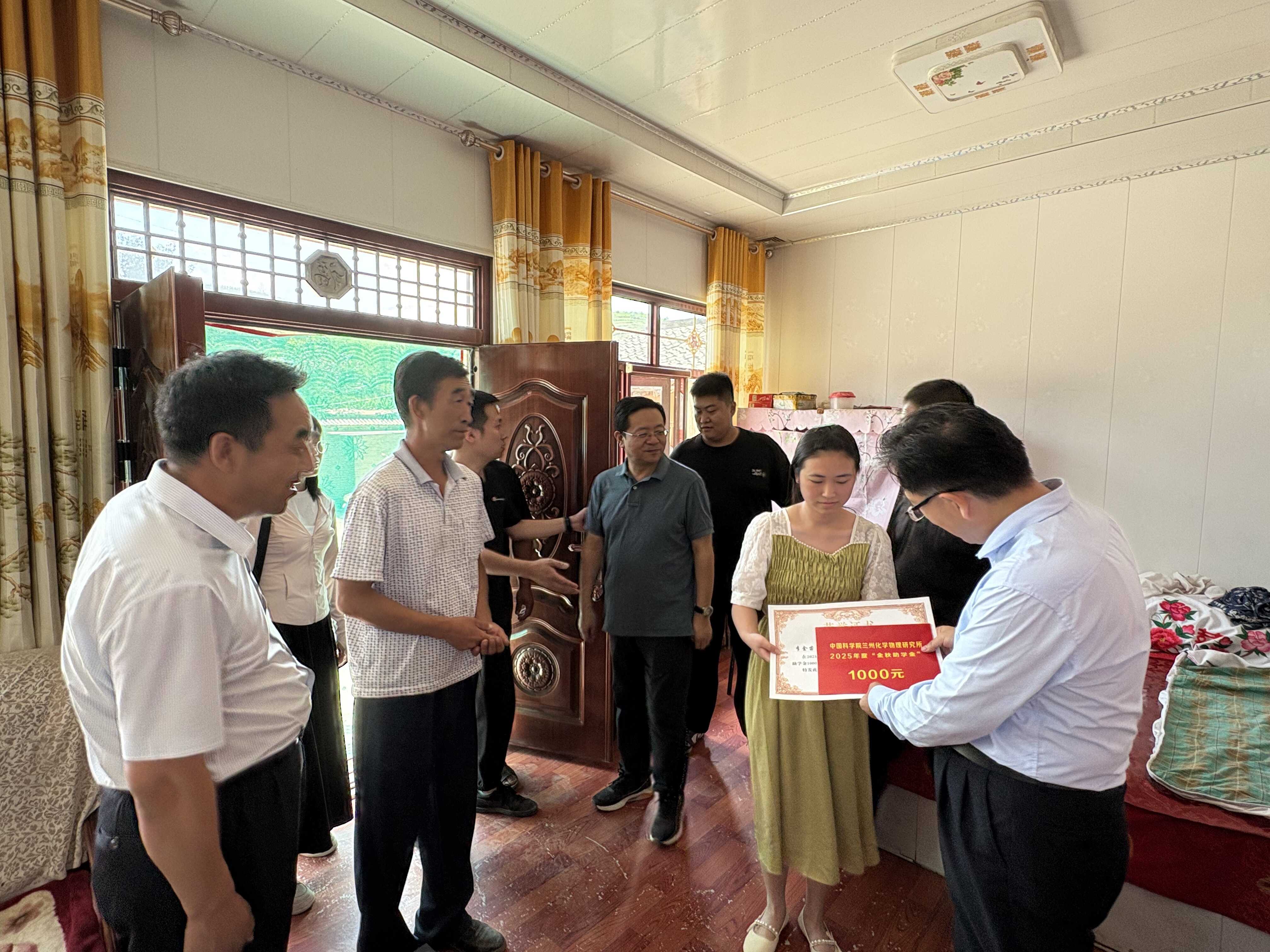 活動現(xiàn)場,中國科學(xué)院蘭州化學(xué)物理研究所駐王馬山村工作隊介紹了2025年王馬山村中高考錄取情況,并向29名考取大學(xué)、碩士研究生以及中考成績優(yōu)異的學(xué)生發(fā)放助學(xué)金,為其中考取大學(xué)和碩士的學(xué)生贈送行李箱,3位民辦教師和4位優(yōu)秀教師也獲資助,這些資助既是對師生努力的肯定,也為他們繼續(xù)深造提供了有力支持。同時,部分受助學(xué)生、教師代表進行發(fā)言。隨后,王齊華一行通過入戶走訪為部分困難家庭送去米面等生活物資,還實地查看了王馬山村種養(yǎng)殖產(chǎn)業(yè)增收情況。