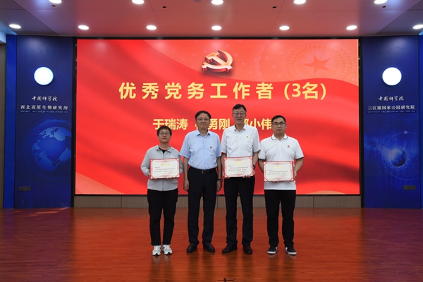 楊勇剛代表所黨委向受到表彰的黨組織和優(yōu)秀個人表示熱烈祝賀,并向辛勤工作在研究所各個崗位上的黨員致以節(jié)日的問候。同時,希望受到表彰的先進黨支部、優(yōu)秀共產(chǎn)黨員和優(yōu)秀黨務(wù)工作者,要繼續(xù)保持謙虛謹慎、不驕不躁的作風(fēng),以更加堅定的黨性、更加過硬的作風(fēng)、更加振奮的精神,努力創(chuàng)造新的業(yè)績、作出新的貢獻。希望所屬其他黨支部和全所黨員、職工,要向受表彰的先進黨支部、優(yōu)秀共產(chǎn)黨員和優(yōu)秀黨務(wù)工作者學(xué)習(xí),以優(yōu)秀模范為榜樣,以先進典型為標(biāo)桿,勇于實干擔(dān)當(dāng)、務(wù)實進取,牢固樹立“四個意識”,堅定“四個自信”, 堅決做到“兩個維護”,努力搶占高原生物學(xué)領(lǐng)域科技制高點,在實現(xiàn)高水平科技自立自強和建設(shè)科技強國的新征程中再立新功!