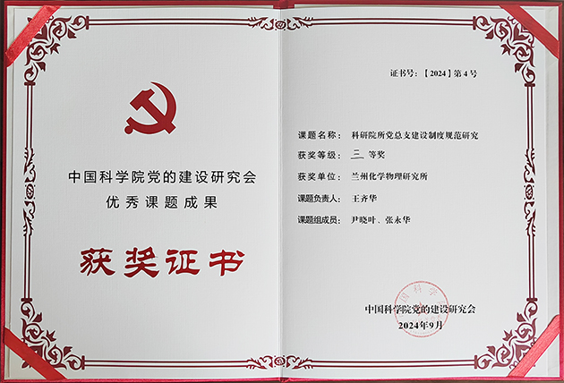 蘭州化物所獲中國科學(xué)院黨的建設(shè)研究會2024年優(yōu)秀課題成果三等獎