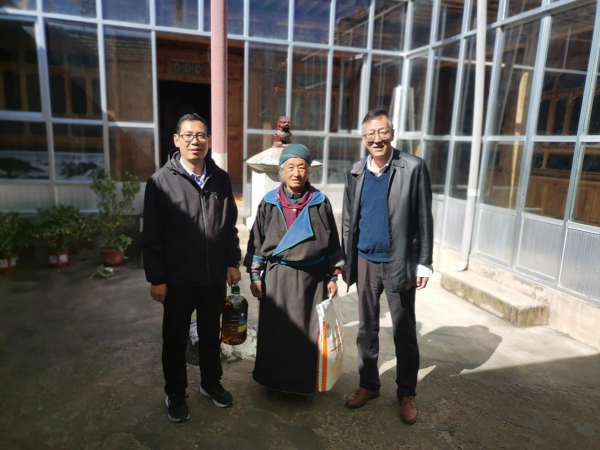 楊勇剛一行首先走訪了2戶結(jié)對(duì)幫扶脫貧戶,詳細(xì)了解他們?cè)跒?zāi)后重建、就業(yè)務(wù)工、家庭收入、子女入學(xué)、產(chǎn)業(yè)幫扶等方面的具體情況,認(rèn)真傾聽(tīng)群眾訴求,并為他們送去面、油等生活物資和青海鹽湖所的關(guān)心問(wèn)候。隨后,駐村第一書(shū)記詳細(xì)匯報(bào)了一年來(lái)工作隊(duì)幫扶工作進(jìn)展,以及重點(diǎn)圍繞日扎村的災(zāi)后安置、搬遷重建等工作成績(jī)。