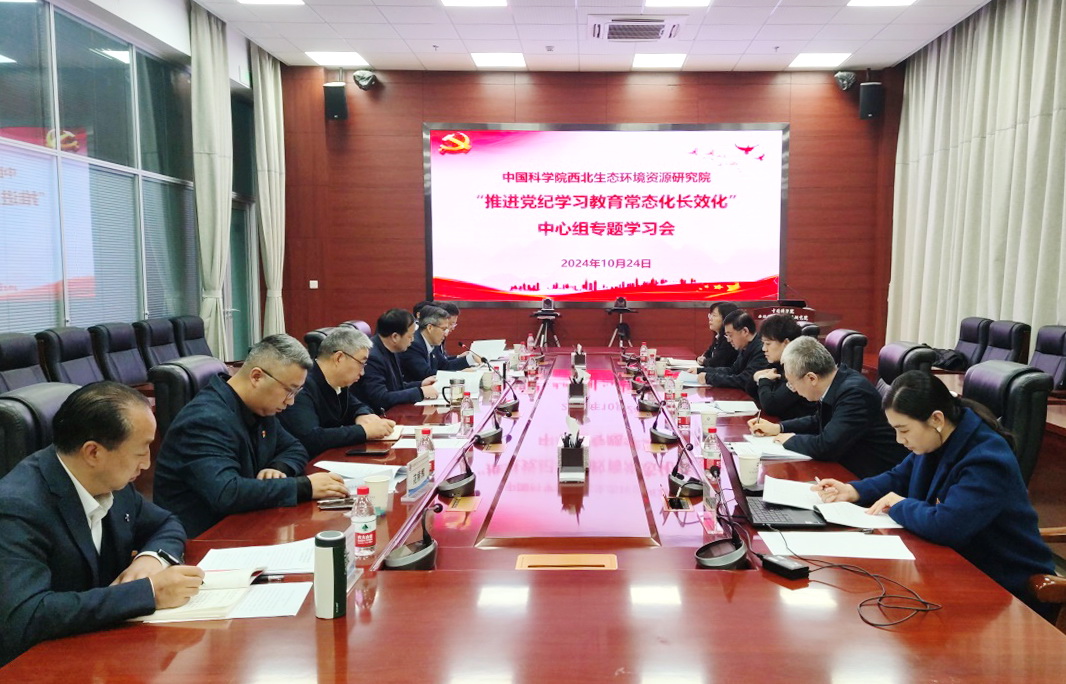 10月24日,中國科學(xué)院西北生態(tài)環(huán)境資源研究院召開“推進(jìn)黨紀(jì)學(xué)習(xí)教育常態(tài)化長(zhǎng)效化”黨委理論學(xué)習(xí)中心組專題學(xué)習(xí)會(huì),深入學(xué)習(xí)領(lǐng)會(huì)習(xí)近平總書記關(guān)于黨紀(jì)學(xué)習(xí)教育的重要指示精神和中央黨的建設(shè)工作領(lǐng)導(dǎo)小組第八次會(huì)議精神,并結(jié)合實(shí)際進(jìn)行發(fā)言交流與研究討論。