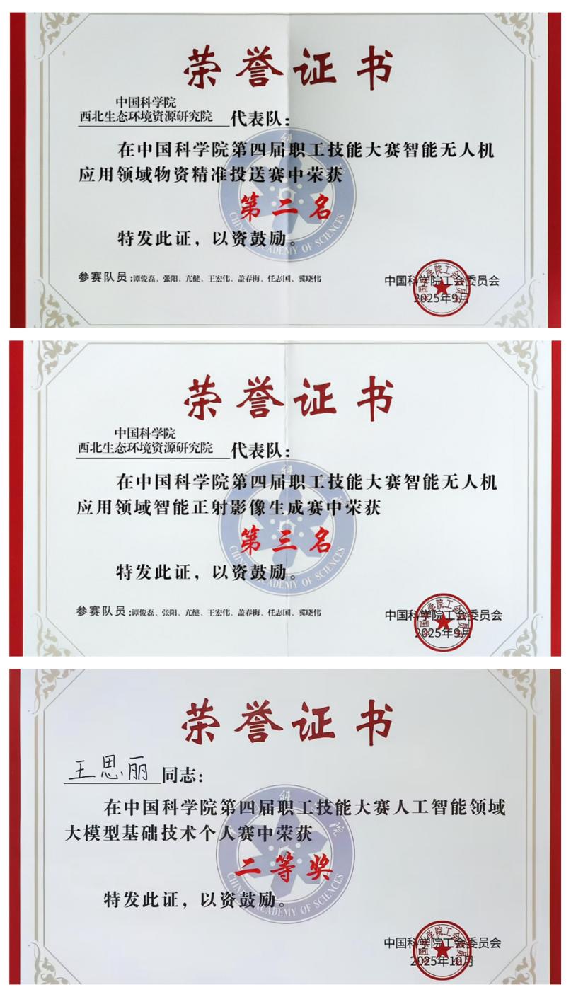 在西北研究院黨委的高度重視與工會的精心組織下,科研團(tuán)隊(duì)積極響應(yīng)、踴躍參賽。智能無人機(jī)應(yīng)用領(lǐng)域,由黑河遙感試驗(yàn)研究站譚俊磊、亢健、張陽等6名選手組成的團(tuán)隊(duì)通過精準(zhǔn)路徑規(guī)劃與動態(tài)負(fù)載調(diào)控,實(shí)現(xiàn)復(fù)雜環(huán)境下物資的穩(wěn)定投送,依托自研靶標(biāo)識別程序,顯著提升正射影像數(shù)據(jù)處理效率,榮獲了“物資精準(zhǔn)投送”賽道全院第二名,“智能正射影像生成”賽道全院第三名和團(tuán)隊(duì)三等獎。在網(wǎng)信智能應(yīng)用服務(wù)領(lǐng)域,國家冰川凍土沙漠科學(xué)數(shù)據(jù)中心團(tuán)隊(duì)將專業(yè)領(lǐng)域數(shù)據(jù)和服務(wù)能力與AI的強(qiáng)大分析推理能力結(jié)合,實(shí)現(xiàn)自然語言交互、數(shù)據(jù)智能分析和可視化展示,提升了數(shù)據(jù)中心的智能化服務(wù)水平,榮獲了“MCP云服務(wù)”賽道三等獎。在人工智能領(lǐng)域,文獻(xiàn)情報中心王思麗基于中國科學(xué)院 “磐石?科學(xué)基礎(chǔ)大模型”,圍繞人工智能基礎(chǔ)理論、實(shí)操能力與知識融合推理能力展開角逐,榮獲“大模型基礎(chǔ)技術(shù)個人賽”二等獎。