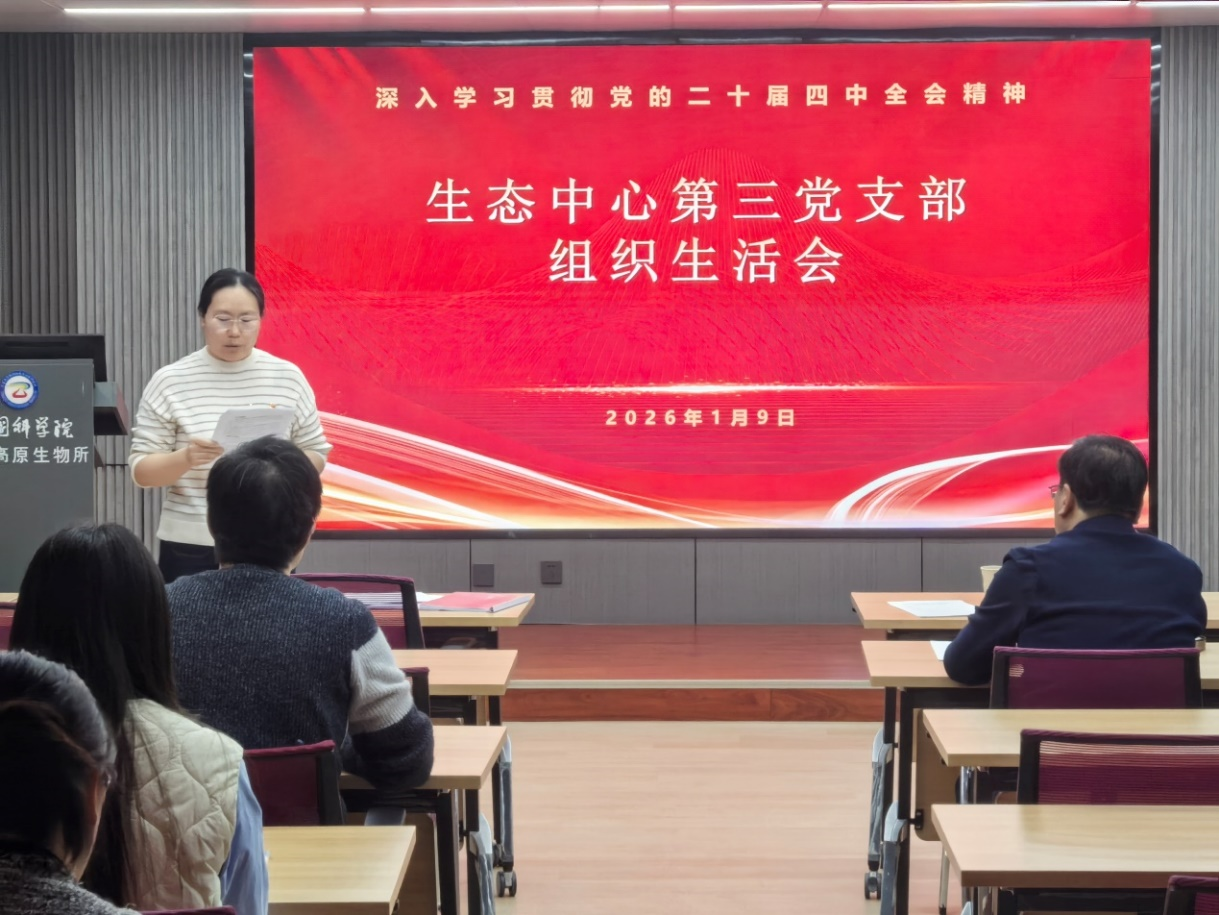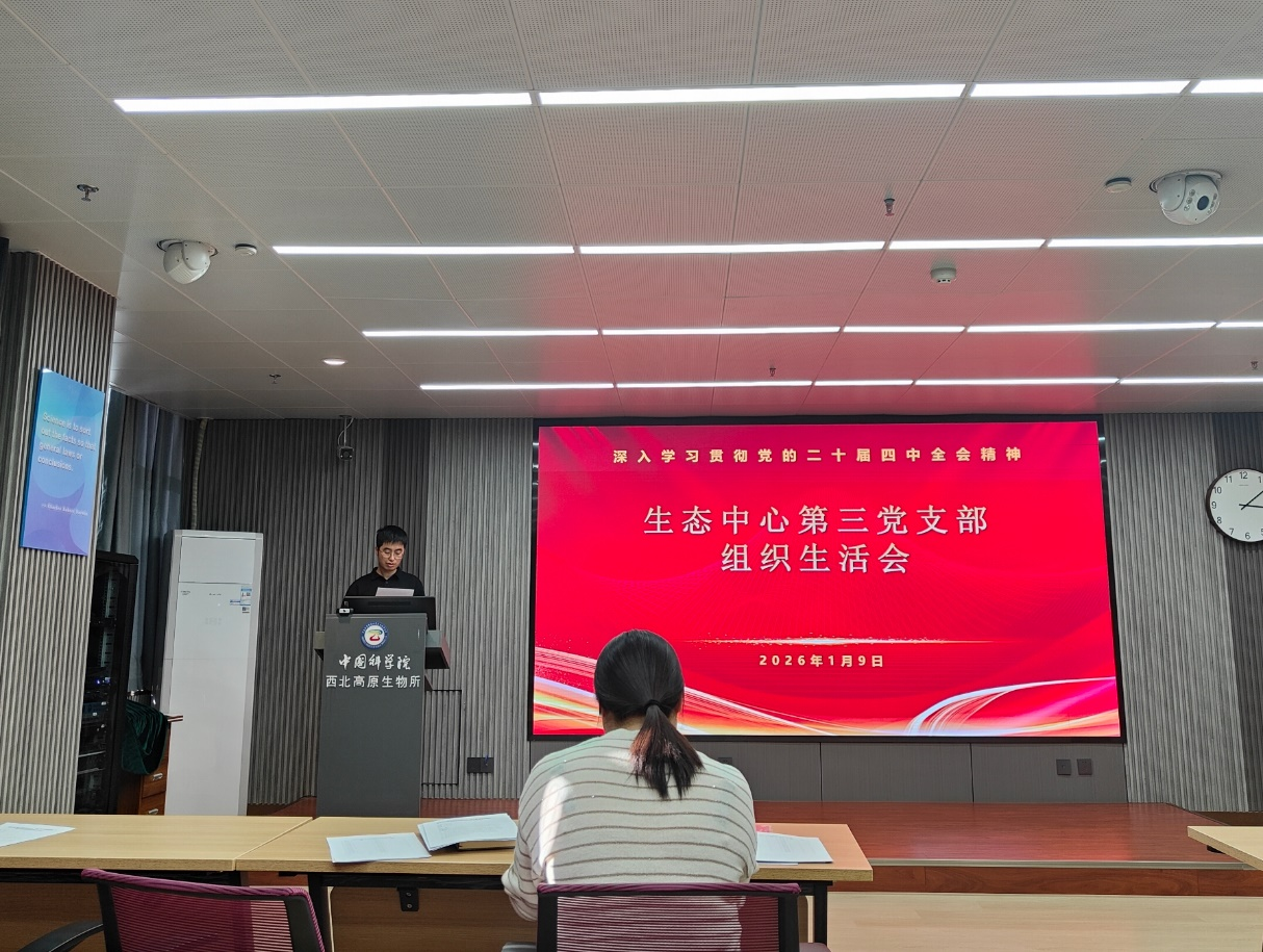 1月9日下午,中國科學院西北高原生物研究所生態(tài)中心第三黨支部召開組織生活會深入學習貫徹黨的二十屆四中全會精神。會議由支部書記蔡振媛主持,黨委委員、支部聯(lián)系人徐世曉到會指導,支部全體黨員、發(fā)展對象及入黨積極分子參加。