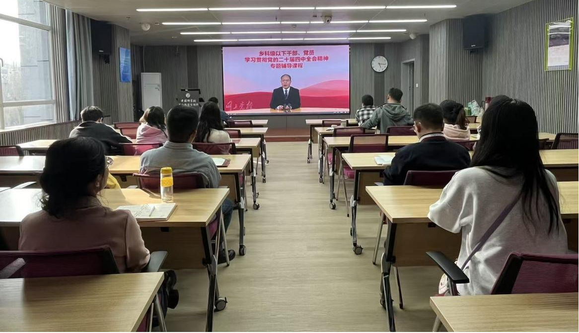 宣傳委員李云組織開展“鄉(xiāng)科級以下干部、黨員學(xué)習(xí)貫徹黨的二十屆四中全會精神專題輔導(dǎo)課程”的集中學(xué)習(xí),本次課程為中央黨校(國家行政學(xué)院)經(jīng)濟(jì)學(xué)教研部教授趙振華主講的《“十五五”時期經(jīng)濟(jì)社會發(fā)展的指導(dǎo)思想、重大原則和根本保證》報告,為立足科研崗位踐行全會精神、推動工作落實(shí)奠定了思想基礎(chǔ)。
