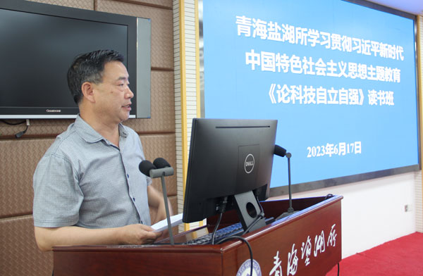 6月17日至19日,青海鹽湖所黨委召開學(xué)習(xí)貫徹習(xí)近平新時(shí)代中國特色社會主義思想主題教育讀書班和集體學(xué)習(xí)研討會,專題學(xué)習(xí)習(xí)近平同志《論科技自立自強(qiáng)》。青海鹽湖所黨委委員、紀(jì)委委員、中層干部、黨支部委員、科技骨干代表等參加了學(xué)習(xí)。會議由黨委書記王永晏主持。