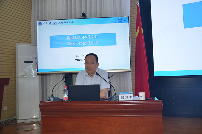 為貫徹落實中國科學(xué)院加強科技倫理治理的相關(guān)文件精神,進一步完善科技倫理體系,提升科技倫理治理能力,有效防控科技倫理風(fēng)險,7月18日,中國科學(xué)院蘭州分院組織在蘭系統(tǒng)單位參加科技倫理宣講專題講座,特邀中國科學(xué)院監(jiān)督與審計局局長楊衛(wèi)平宣講。專題講座由蘭州分院紀檢組組長、分黨組成員吳建剛主持。