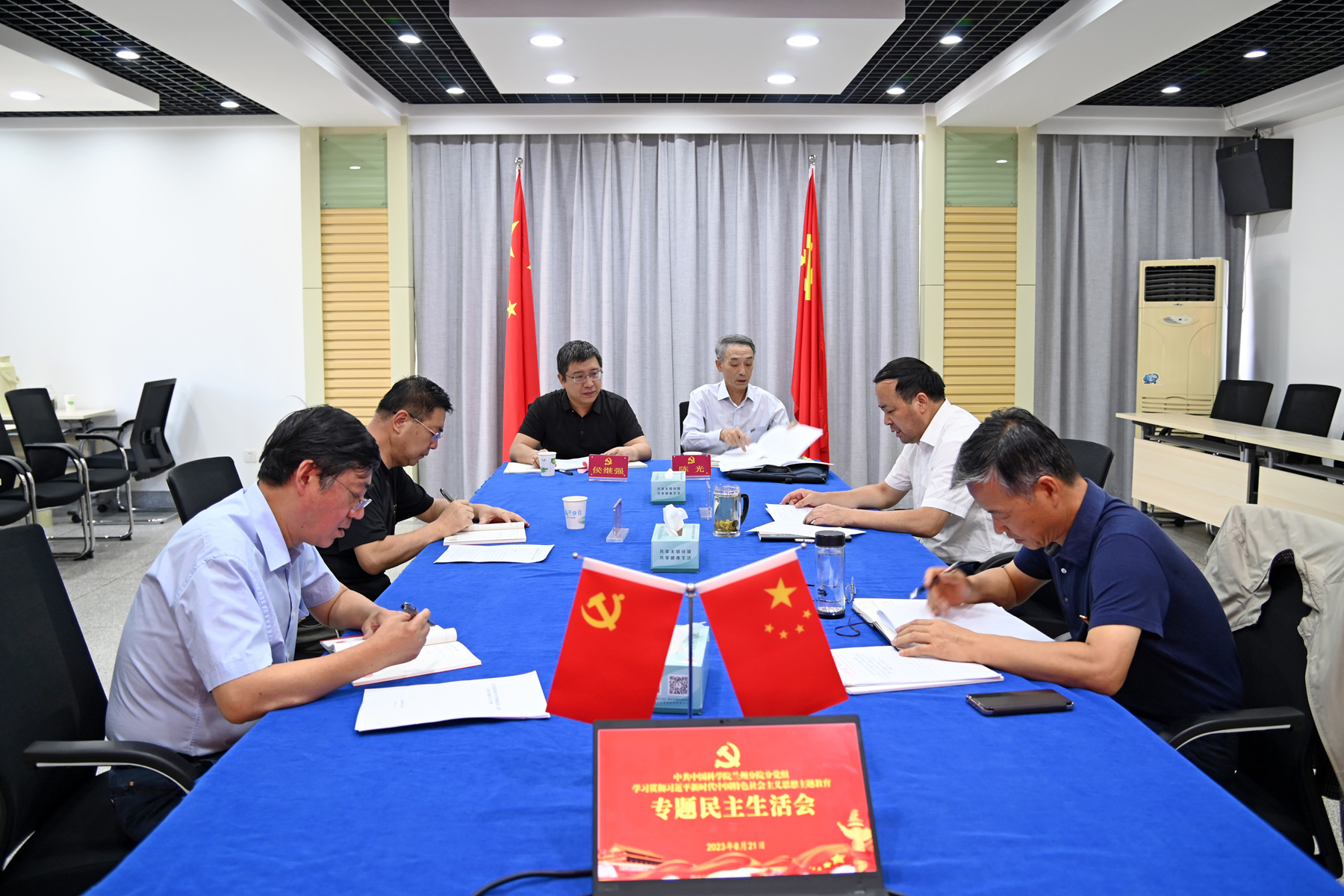 8月21日,中共中國(guó)科學(xué)院蘭州分院分黨組召開學(xué)習(xí)貫徹習(xí)近平新時(shí)代中國(guó)特色社會(huì)主義思想主題教育專題民主生活會(huì),領(lǐng)導(dǎo)班子圍繞專題民主生活會(huì)主題,深挖問題根源,進(jìn)行黨性分析,扎實(shí)做好民主生活會(huì)“后半篇文章”等進(jìn)行了對(duì)照檢查。會(huì)議由蘭州分院分黨組書記、院長(zhǎng)馮起主持,分黨組領(lǐng)導(dǎo)班子成員陳改學(xué)、吳建剛、趙培慶參加會(huì)議。中國(guó)科學(xué)院主題教育第5巡回指導(dǎo)組組長(zhǎng)陳光出席會(huì)議并作點(diǎn)評(píng)發(fā)言。