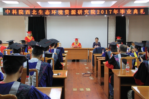 6月9日,中國科學(xué)院西北生態(tài)環(huán)境資源研究院(籌)(簡稱西北研究院)2017年研究生畢業(yè)典禮隆重舉行。西北研究院黨委書記、副院長謝銘,學(xué)位評定委員會主席、常務(wù)副院長賴遠明院士,副院長馮起研究員,油氣中心主任夏燕青研究員,學(xué)位評定委員會委員代表,導(dǎo)師代表及2017屆畢業(yè)生近百人齊聚一堂見證莊嚴(yán)的時刻。典禮由馮起主持。