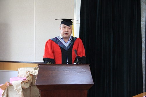 在莊嚴(yán)的國歌聲中典禮拉開了序幕。賴遠明首先宣讀了2017年學(xué)位擬授予決定。接著,謝銘在致詞中感謝同學(xué)們與西北研究院共同成長,祝愿同學(xué)們畢業(yè)后做出更好成績。