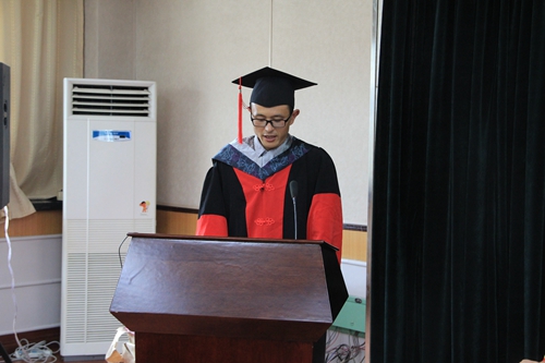 優(yōu)秀畢業(yè)生康建軍博士代表畢業(yè)生發(fā)言。他首先向西北研究院、向各位悉心培育學(xué)生的導(dǎo)師們表示感謝。并寄語尚未畢業(yè)的師弟師妹們,鼓勵他們“堅持一下,再堅持一下,也許成功就在不遠的前方”,最后表示將銘記母校,不管走到哪里,不管在什么樣的工作崗位上都會承擔(dān)國家、民族和社會賦予的責(zé)任。