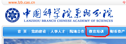 登陸中國(guó)科學(xué)院蘭州分院網(wǎng)站(http://www.tyddw.com/),點(diǎn)擊頁(yè)面上方的“教育培訓(xùn)”欄目,如圖