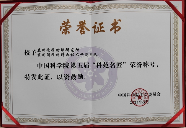 蘭州化物所空間潤(rùn)滑材料與技術(shù)研究團(tuán)隊(duì)獲第五屆中國科學(xué)院科苑名匠表彰