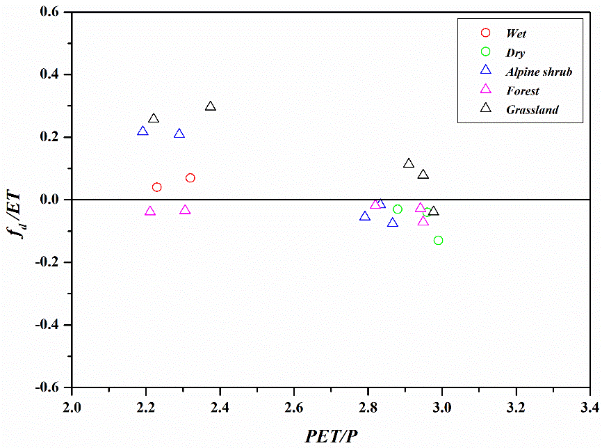 圖3 基巖風化層的垂直通量(fd)對蒸散發(fā)(ET)的貢獻。雨季(2017年、2019年)和旱季(2018年、2020年、2021年)。