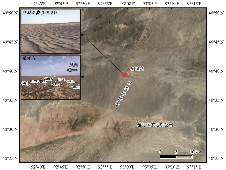 研究發(fā)現(xiàn),礫波紋的發(fā)育與風(fēng)況和沉積物粒度密切相關(guān)。三壟沙地區(qū)的起沙風(fēng)主要在春夏兩季,兩季輸沙勢占到全年的67.1%。春季和夏季是觀測礫波紋形成和演化的最佳時間窗口。礫波紋峰頂處顆粒包含極粗沙和極細(xì)礫組分,表層較粗顆粒的覆蓋也是礫波紋能夠在強(qiáng)烈風(fēng)蝕區(qū)發(fā)育的關(guān)鍵因素。對礫波紋的深入研究,有助于理解與其他行星(如火星)相類似的巨型波紋等風(fēng)成地貌的形態(tài)與物質(zhì)組成。