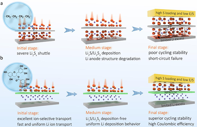 圖1.?鋰-硫電池中隔膜與電極間界面演變的示意圖