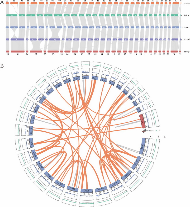 藏羚的基因組特征及與近緣物種之間的基因組共線性結(jié)果