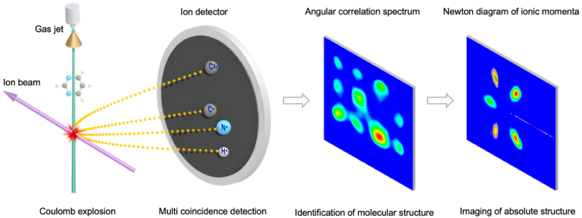 中國科學(xué)院近代物理研究所原子物理中心苑航博士、許慎躍研究員和馬新文研究員等在分子庫侖爆炸成像研究方面取得重要進(jìn)展,利用蘭州重離子加速器提供的高電荷態(tài)離子束流實(shí)現(xiàn)了對復(fù)雜分子的高精度結(jié)構(gòu)成像。相關(guān)成果于11月7日發(fā)表在Physical Review Letters上。
