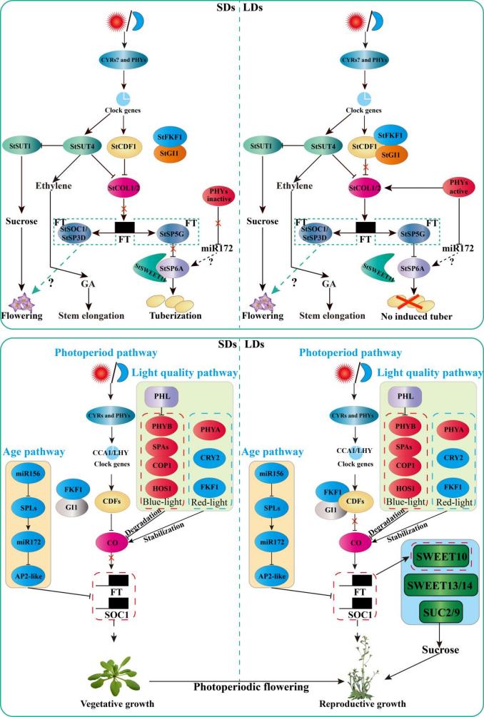 糖轉(zhuǎn)運(yùn)蛋白的主要作用是源庫運(yùn)輸與調(diào)控,影響植物生長發(fā)育,響應(yīng)環(huán)境脅迫,與其他信號(hào)轉(zhuǎn)導(dǎo)通路的交互,介導(dǎo)植物-微生物的互作?;诖?,文章提出了通過糖轉(zhuǎn)運(yùn)蛋白提高作物產(chǎn)量的策略,增強(qiáng)糖轉(zhuǎn)運(yùn)蛋白與共生微生物的相互作用,提高作物對(duì)養(yǎng)分(如磷和氮)的吸收和運(yùn)輸效率,從而促進(jìn)作物生長,增加作物產(chǎn)量;建立光周期-糖轉(zhuǎn)運(yùn)蛋白模型,提高光合效率與資源分配,優(yōu)化光合作用,提高作物產(chǎn)量;借助 GWAS(全基因組關(guān)聯(lián)分析)和QTL(數(shù)量性狀位點(diǎn))定位技術(shù)及基因編輯(如 CRISPR-Cas9)相結(jié)合的技術(shù),通過遺傳策略改良作物,以達(dá)到增加作物產(chǎn)量的目的。該綜述文章為深入理解糖轉(zhuǎn)運(yùn)蛋白的作用機(jī)制提供了新思路,為提高作物產(chǎn)量提供了新的策略,對(duì)保障糧食安全具有重要參考價(jià)值和理論指導(dǎo)意義。