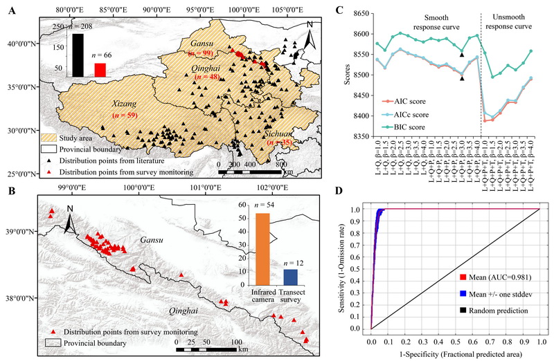 全球生物多樣性面臨嚴(yán)重威脅,瀕危物種的保護(hù)已成為當(dāng)前生物多樣性保護(hù)領(lǐng)域最為緊迫的任務(wù)之一。棲息地保護(hù)是瀕危物種保護(hù)的核心任務(wù)之一,通過建立適宜性模型評(píng)估物種棲息地的空間分布現(xiàn)狀,能夠有效評(píng)估自然保護(hù)區(qū)現(xiàn)有保護(hù)成效并識(shí)別瀕危物種潛在的保護(hù)空缺。青藏高原是全球重要的生物多樣性熱點(diǎn)地區(qū),馬麝是該區(qū)域特有的瀕危物種,因受到棲息地破碎和非法捕獵等的多重威脅,種群數(shù)量顯著下降,該物種的保護(hù)與種群的恢復(fù)已刻不容緩,面臨著一系列嚴(yán)峻的挑戰(zhàn)。本研究選取馬麝作為研究主體,應(yīng)用棲息地適宜性評(píng)估方法,探討瀕危物種在自然保護(hù)區(qū)的保護(hù)成效并識(shí)別保護(hù)空缺,旨在為瀕危物種的棲息地保護(hù)和種群恢復(fù)提供更加精準(zhǔn)的策略和實(shí)踐指導(dǎo),確保這些珍稀瀕危物種能夠得到有效維護(hù)與可持續(xù)發(fā)展。