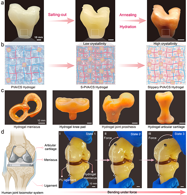 圖1. 高承載、低摩擦、耐磨損的雙物理交聯(lián)網(wǎng)絡(luò)水凝膠