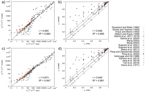 應用該理論,成功對過去70多年來實驗測定的各類離子交換膜體系中離子活度系數(shù)數(shù)據(jù)進行了統(tǒng)一描述。研究特別強調:膜內復雜的聚合物網(wǎng)絡作為拓撲整體對自由離子行為具有決定性作用。(式3)中的標度因子β作為表征膜聚合物整體拓撲結構的關鍵參數(shù),為先進離子交換膜的設計提供了全新理論坐標。