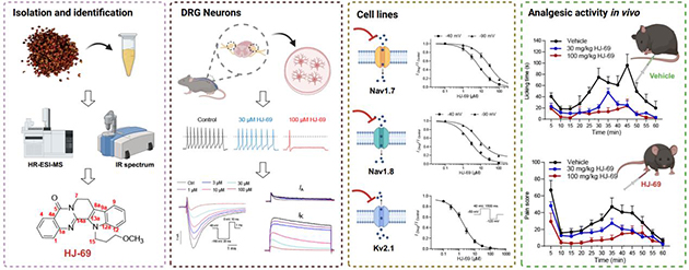 圖2. 花椒來(lái)源的離子通道抑制劑HJ-69及其鎮(zhèn)痛活性研究