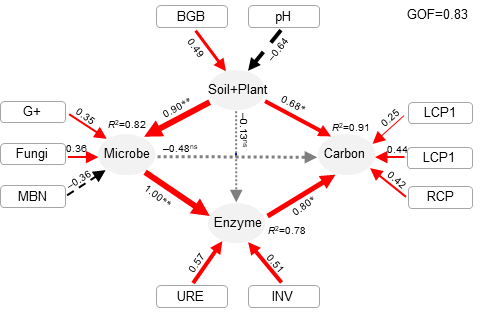 高寒草甸土壤有機碳變化與生產(chǎn)力、微生物及酶活性的關(guān)聯(lián)模型