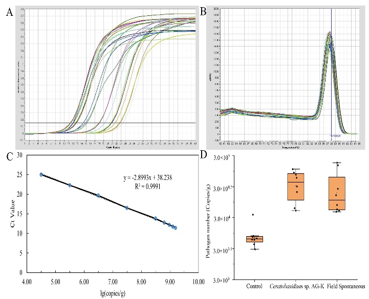 此外,研究團(tuán)隊建立并優(yōu)化了針對該病原的特異性 RT-qPCR 檢測體系,可對樣品中病原實現(xiàn)快速監(jiān)測與絕對定量,用于田間流行動態(tài)監(jiān)測與防控效果評估,為制定區(qū)域化、精準(zhǔn)化的綜合防控策略提供技術(shù)依據(jù)。