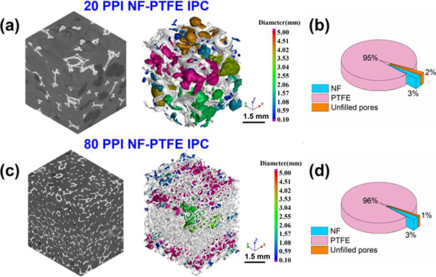 圖1. 泡沫鎳-聚四氟乙烯互穿相復合材料孔隙率分析