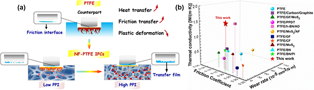 圖2. 泡沫鎳-聚四氟乙烯互穿相復合材料磨損機制及性能