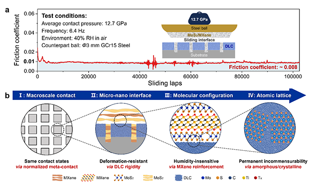 圖3. 工程尺度超潤滑性能及跨尺度結(jié)構(gòu)協(xié)同作用機(jī)理