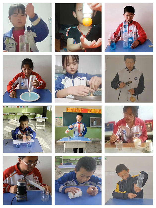 前期,研究所面向幫扶村師生組織了“向星·向未來”科學實驗短視頻大賽,學校積極響應(yīng),學生踴躍參加,共提交46件作品,最終評選出30個優(yōu)秀獎、10個參與獎以及13名優(yōu)秀指導(dǎo)老師獎。作品展現(xiàn)形式豐富多彩,涵蓋了摩擦學、慣性定律、大氣壓力、熱脹冷縮等生活中常見的原理及現(xiàn)象。