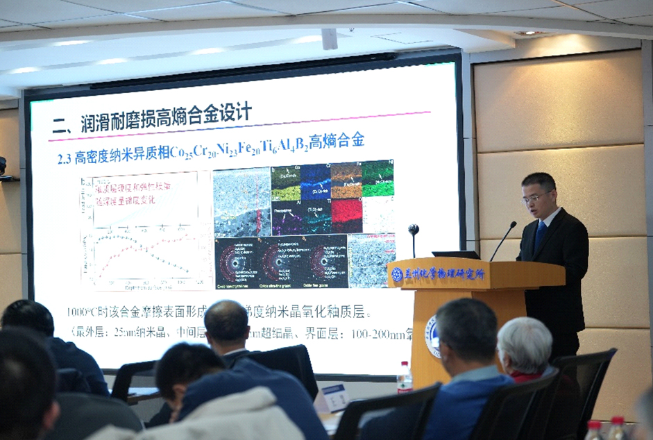 蘭州化物所所長、潤滑材料重點(diǎn)實(shí)驗(yàn)室主任周峰研究員作了2024年度實(shí)驗(yàn)室工作報告。詳細(xì)介紹了2024年實(shí)驗(yàn)室重組和黨建創(chuàng)新文化建設(shè)情況,匯報了實(shí)驗(yàn)室在科研成果、平臺建設(shè)、人才引進(jìn)與培養(yǎng)、產(chǎn)業(yè)化等方面取得的成績和存在的問題與思考,提出了2025年工作重點(diǎn)及目標(biāo)。隨后,程軍研究員和張耀明研究員分別作了題為“潤滑耐磨損高熵合金的設(shè)計(jì)研究”和“形狀記憶聚合物創(chuàng)制及其智能響應(yīng)應(yīng)用”的學(xué)術(shù)報告。