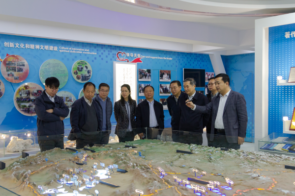沈政昌一行參觀了青海鹽湖所科技成果展廳,對青海鹽湖所的歷史沿革、科研平臺、人才隊伍、科研成果、重大歷史貢獻(xiàn)和鹽湖資源開發(fā)利用研究進(jìn)展等情況進(jìn)行了解。
