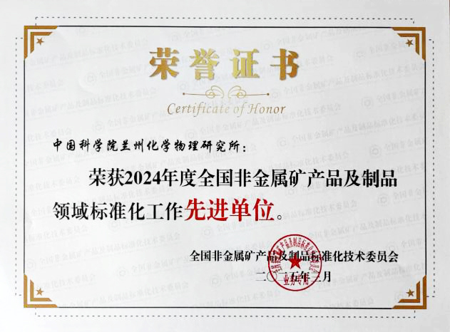 蘭州化物所獲2024年度全國非金屬礦產(chǎn)品及制品領(lǐng)域標(biāo)準(zhǔn)化工作先進(jìn)單位