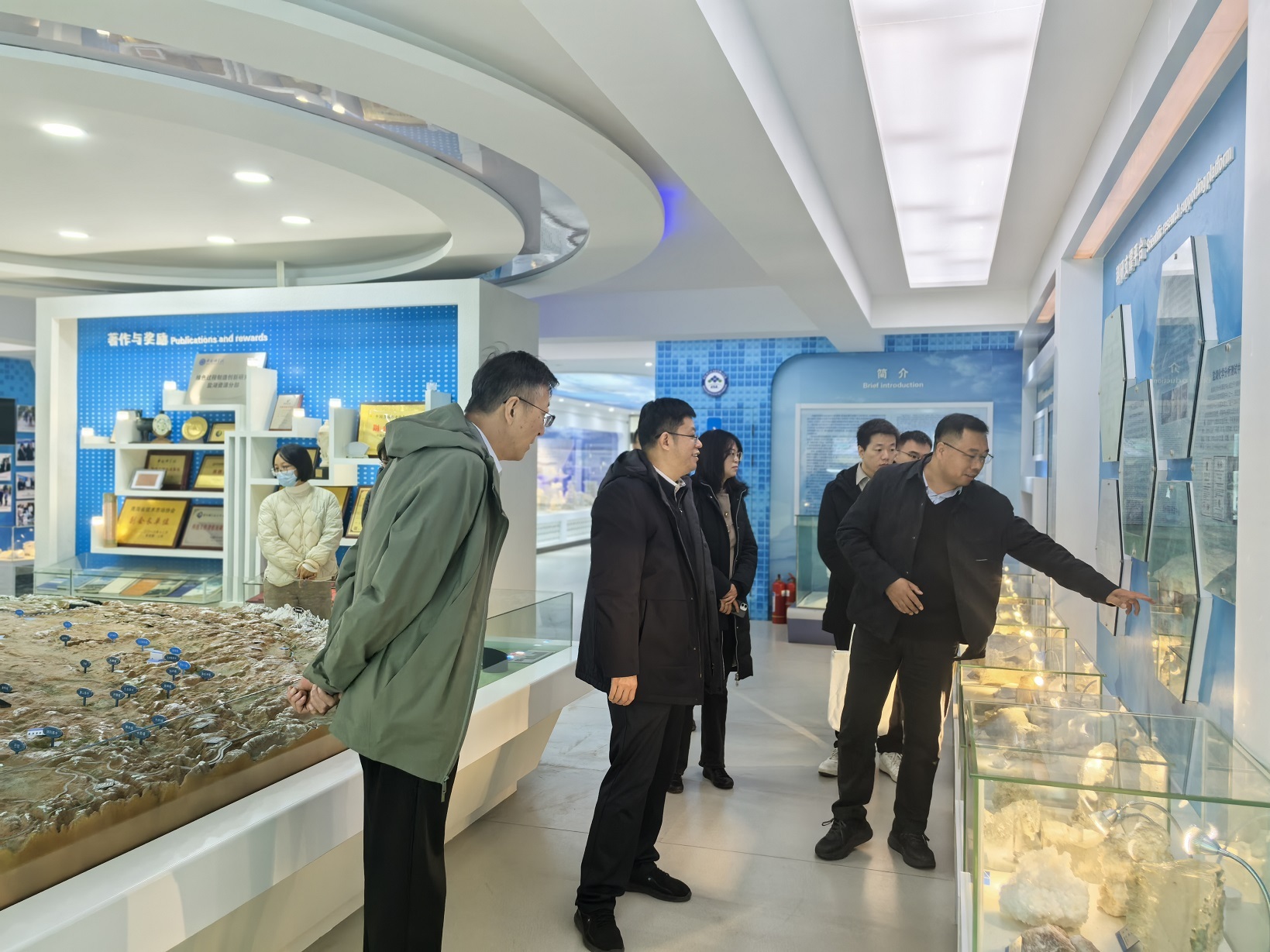 萬士林一行先后參觀了青海鹽湖所科技成果展廳及地質(zhì)與環(huán)境實驗室展覽館,詳細了解了研究所的歷史沿革、科研平臺建設(shè)、人才隊伍構(gòu)成、重要科研成果及在鹽湖資源開發(fā)利用方面的研究進展。