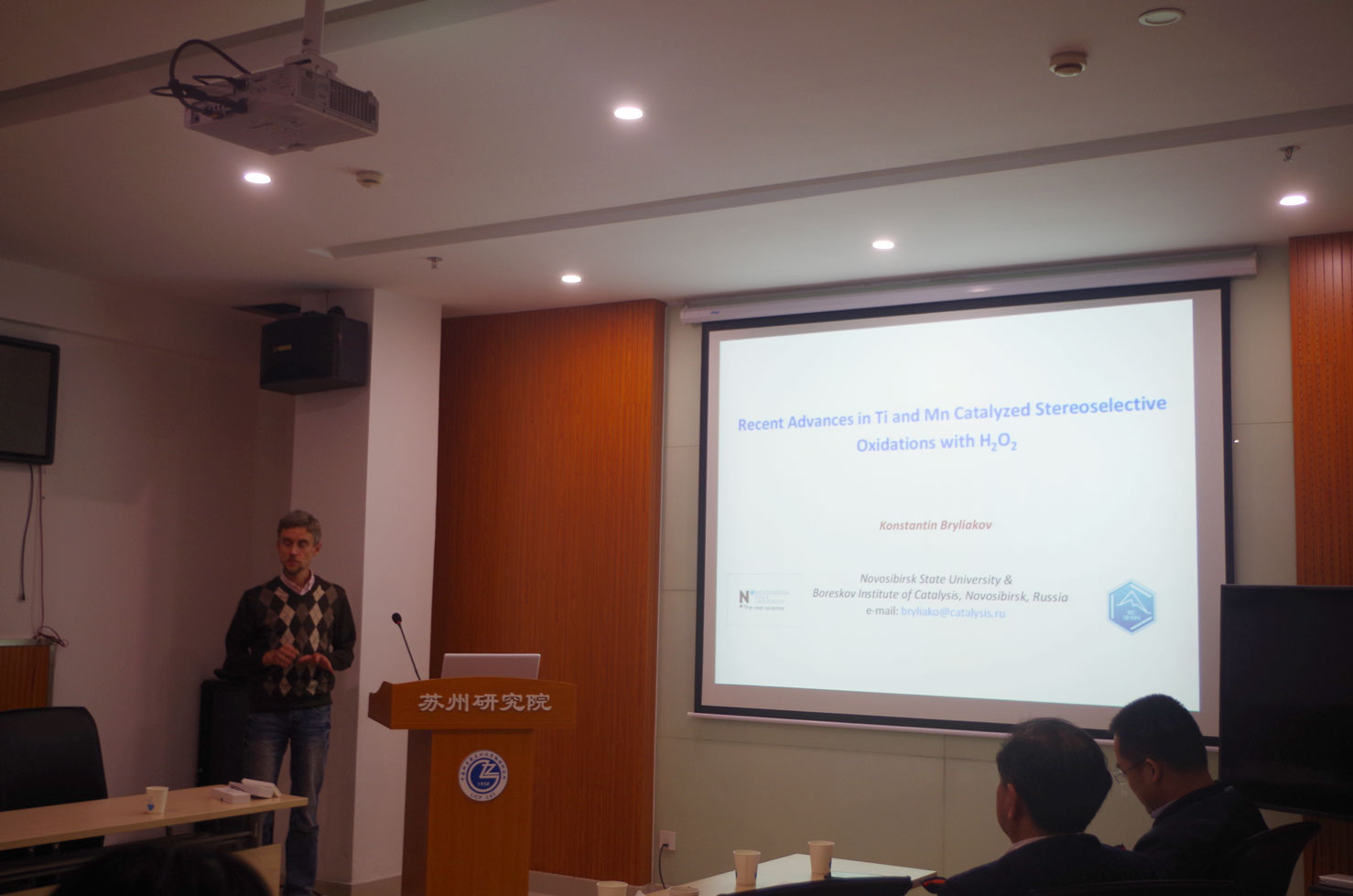 11月19日,中國(guó)科學(xué)院蘭州化學(xué)物理研究所羰基合成與選擇氧化國(guó)家重點(diǎn)實(shí)驗(yàn)室舉辦仿生化學(xué)與催化專題報(bào)告會(huì),邀請(qǐng)中國(guó)科學(xué)院化學(xué)研究所張純喜研究員、俄羅斯科學(xué)院Boreskov催化研究所Konstantin Bryliakov教授和韓國(guó)梨花女子大學(xué)Wonwoo Nam教授到蘭州化物所蘇州研究院,分別作了題為“Mimicking the Water-Splitting Catalytic Center in Photosynthesis”“Recent Advances in Ti and Mn Catalyzed Stereoselective Oxidations with H2O2”和“Biomimetic Metal-Oxygen Intermediates in Dioxygen Activation Chemistry”的學(xué)術(shù)報(bào)告。