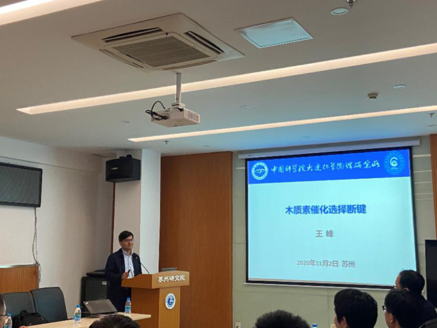 11月2日,應(yīng)羰基合成與選擇氧化國家重點(diǎn)實(shí)驗(yàn)室邀請,中國科學(xué)院大連化學(xué)物理研究所王峰研究員到中國科學(xué)院蘭州化學(xué)物理研究所蘇州研究院進(jìn)行學(xué)術(shù)交流,并作了題為“木質(zhì)素催化選擇斷鍵”的學(xué)術(shù)報(bào)告。