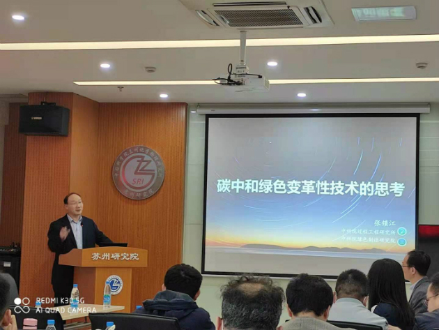 4月25日,中國科學院院士、中科院過程工程研究所張鎖江研究員應邀訪問中國科學院蘭州化學物理研究所蘇州研究院,并作了題為“碳中和綠色變革性技術的思考”的學術報告。