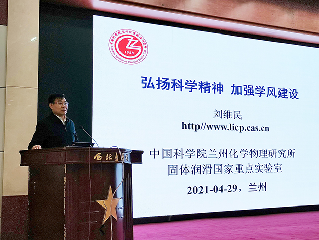 4月27至30日,中國(guó)科學(xué)院大學(xué)2021年第3期研究生指導(dǎo)教師研討班在蘭州舉行,中國(guó)科學(xué)院院士、蘭州化物所學(xué)術(shù)委員會(huì)副主任委員、科研誠(chéng)信建設(shè)委員會(huì)主任劉維民作了題為“弘揚(yáng)科學(xué)精神、加強(qiáng)學(xué)風(fēng)建設(shè)”的專題報(bào)告。蘭州分院系統(tǒng)單位100余位研究生導(dǎo)師參加了培訓(xùn)班。