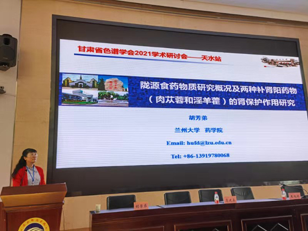 甘肅省化學會色譜專業(yè)委員會秘書長邱洪燈研究員主持會議學術報告。師彥平研究員,蘭州大學陳興國教授,甘肅省醫(yī)學科學研究院藥物研究所所長、國家中醫(yī)藥管理局三級中藥分析實驗室主任石曉峰、蘭州大學胡芳弟教授分別作了題為“固相萃取與食品安全分析”“基于金屬有機框架材料的毛細管電泳在手性分離中的應用研究”“藥用植物高值化利用的思考與實踐”“隴源食藥物質產(chǎn)業(yè)概況及兩種補腎陽中藥的腎保護作用研究”的大會報告。浙江福立儀器工程師雷曉強作了題為“福立儀器的發(fā)展之路及行業(yè)整體調整解決方案”的報告。
