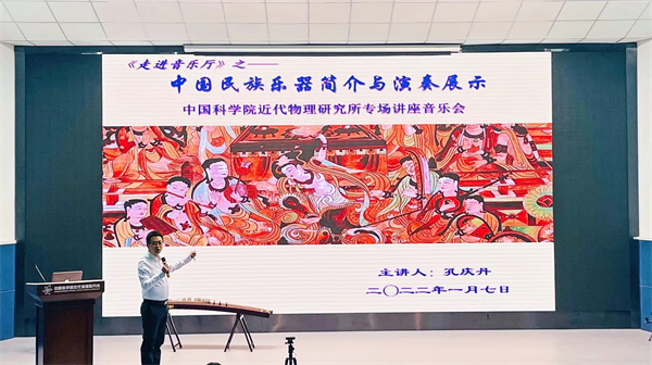 本次論壇以《<走進(jìn)音樂廳>之中科院近代物理所新年民樂專場講座》為主題,報告人孔慶丹教授來自于西北師范大學(xué)音樂學(xué)院,報告人詳細(xì)介紹了包括笛、嗩吶、笙、二胡、琵琶、柳琴、阮、箏等在內(nèi)的多種傳統(tǒng)民間樂器,同時配以現(xiàn)場演奏的方式,使得大家認(rèn)識欣賞樂器的同時也深入了解了各類民樂的表現(xiàn)形式以及音樂廳文化,對民樂有了更加立體、直觀的認(rèn)識。報告結(jié)束,大家就如何提高個人藝術(shù)修養(yǎng)以及對青少年的音樂啟蒙教育等問題與主講人進(jìn)行了熱烈的探討和交流。