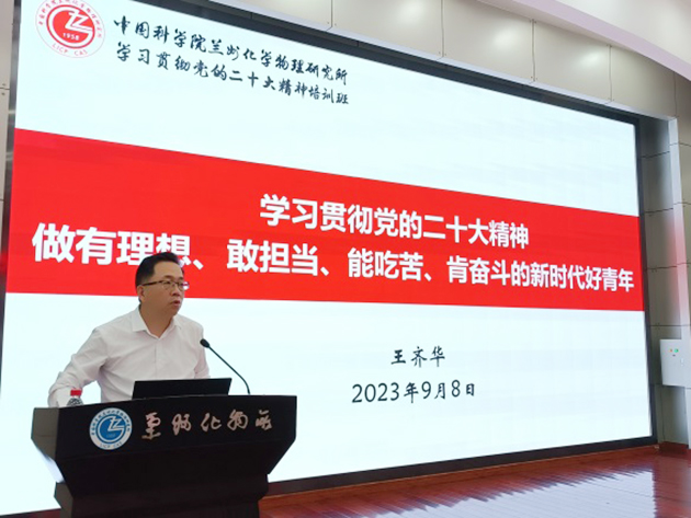 蘭州化物所黨委書記王齊華作了題為“學(xué)習(xí)貫徹黨的二十大精神 做有理想敢擔(dān)當(dāng)能吃苦肯奮斗的新時(shí)代好青年”的專題黨課,并對(duì)全體研究生同學(xué)提出希望和要求。希望同學(xué)們以習(xí)近平新時(shí)代中國特色社會(huì)主義思想為指導(dǎo),認(rèn)真學(xué)習(xí)領(lǐng)會(huì)黨的二十大精神、習(xí)近平總書記關(guān)于科技創(chuàng)新的重要論述和指示批示精神。面向世界科技前沿、面向國家重大需求、面向國民經(jīng)濟(jì)主戰(zhàn)場、面向人民生命健康,刻苦鉆研,勇于創(chuàng)新,大力傳承弘揚(yáng)科學(xué)家精神,培養(yǎng)高尚的品格、積淀豐厚的學(xué)養(yǎng)、保持良好的心理狀態(tài),努力成長為對(duì)國家、對(duì)民族有用的創(chuàng)新人才,把個(gè)人的理想追求融入黨和國家事業(yè)之中,為早日實(shí)現(xiàn)高水平科技自立自強(qiáng)貢獻(xiàn)青春力量和智慧。