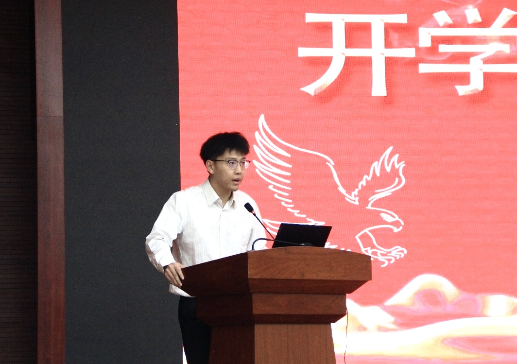 2022級碩士研究生韋楓代表在讀學(xué)生發(fā)言。他對老師們的辛勤付出表示感謝,并分享了自己的學(xué)習(xí)感悟,認為在求學(xué)生涯中應(yīng)砥礪奮進,不忘初心,不負韶華,遇見更好的自己!