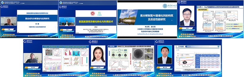 論壇圍繞氨氫能源轉(zhuǎn)化領(lǐng)域的前沿技術(shù)、基礎(chǔ)研究與產(chǎn)業(yè)應(yīng)用,邀請7位青年學(xué)者分別作報(bào)告。中國科學(xué)院大連化學(xué)物理研究所的何騰研究員作了題為“氨合成與分解基礎(chǔ)與應(yīng)用研究”的報(bào)告,提出了金屬氫化物介導(dǎo)合成氨策略,分享了氨在MgO/Ru催化劑分解制氫的中試研究成果,為氨合成與分解催化劑的設(shè)計(jì)及性能提升提供了創(chuàng)新性思路。福州大學(xué)羅宇教授作了題為“氨氫能源高效催化轉(zhuǎn)化與利用技術(shù)”的報(bào)告,系統(tǒng)闡述了從催化劑設(shè)計(jì)到“安全低溫氨分解制氫-提純-加氫”一體化裝備的研發(fā)歷程,為規(guī)?;瘧?yīng)用提供了技術(shù)支撐。大連理工大學(xué)朱文軍助理研究員作了題為“氨分解制氫鎳基催化劑的構(gòu)筑及反應(yīng)性能研究”的報(bào)告,揭示了鎳基催化劑表面NHx物種的脫氫機(jī)制,為低成本高效催化劑的開發(fā)指明了方向。武漢工程大學(xué)項(xiàng)坤副教授作了題為“電催化親核試劑氧化過程的研究”的報(bào)告,從電化學(xué)角度解析有機(jī)分子轉(zhuǎn)化路徑,為小分子高值化利用提供理論依據(jù)。云南大學(xué)孫華傳博士作了題為“高性能電催化劑的可控構(gòu)筑及尿素氧化性能研究”的報(bào)告,指出了尿素氧化偶聯(lián)制氫的創(chuàng)新路徑,提出了高性能電催化劑的可控構(gòu)筑方法。中國科學(xué)院合肥物質(zhì)科學(xué)研究院固體物理研究所李文怡特任副研究員作了題為“Ru基催化劑的構(gòu)筑及其低溫氨分解制氫性能研究”的報(bào)告,針對低溫氨分解制氫的瓶頸,提出Ru基催化劑優(yōu)化策略。蘭州化物所康玉茂助理研究員作了題為“鈷MOF催化劑電氧化尿素穩(wěn)定性調(diào)控研究”的報(bào)告,深入探討了基于鈷MOF催化劑結(jié)構(gòu)形貌調(diào)控、提升電催化氧化尿素活性和穩(wěn)定性,為發(fā)展尿素氧化催化劑提供了新思路。