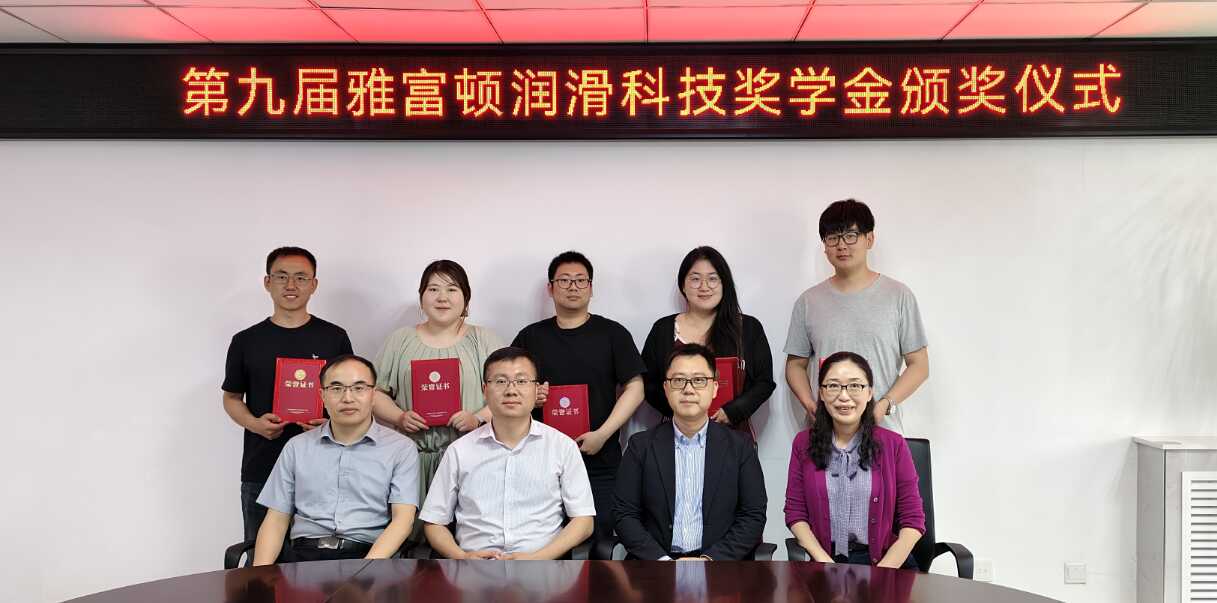 近日,中國科學院蘭州化學物理研究所第九屆雅富頓潤滑科技獎學金頒獎儀式暨技術交流會在青島舉行。雅富頓添加劑公司銷售總監(jiān)甘云強先生、雅富頓公司OEM關系經(jīng)理王銀輝女士,蘭州化物所相關部門負責人參加頒獎儀式。高秋龍、曲關璦、李卓成、趙蔚祎、周銳等5名學生獲獎。