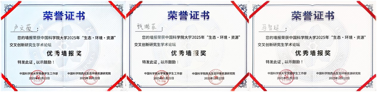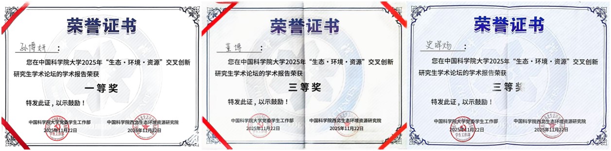 論壇設(shè)置“生態(tài)與環(huán)境領(lǐng)域組”“資源與工程領(lǐng)域組”及“弘揚(yáng)科學(xué)家精神與研究生思政教育管理研討組”三大專題板塊,聚焦國家戰(zhàn)略需求與科技前沿,推動(dòng)學(xué)科融合與協(xié)同創(chuàng)新。青海鹽湖所研究生緊扣青藏高原生態(tài)安全屏障、柴達(dá)木盆地資源高效利用與環(huán)境保護(hù)等關(guān)鍵科學(xué)問題等多個(gè)方向進(jìn)行學(xué)術(shù)報(bào)告和墻報(bào)展示。現(xiàn)場討論熱烈,學(xué)術(shù)氛圍濃厚。通過這一高水平平臺(tái),青海鹽湖所研究生不僅展示了最新的科研進(jìn)展,更與兄弟院所建立了深入的學(xué)術(shù)聯(lián)系,為后續(xù)合作奠定了良好基礎(chǔ)。參會(huì)研究生們憑借出色表現(xiàn),成績斐然。孫博妍榮獲優(yōu)秀學(xué)術(shù)報(bào)告一等獎(jiǎng);董博與史暉煬榮獲優(yōu)秀學(xué)術(shù)報(bào)告三等獎(jiǎng);馬智超、甄璐菲、盧文薇的墻報(bào)榮獲優(yōu)秀墻報(bào)獎(jiǎng)。
